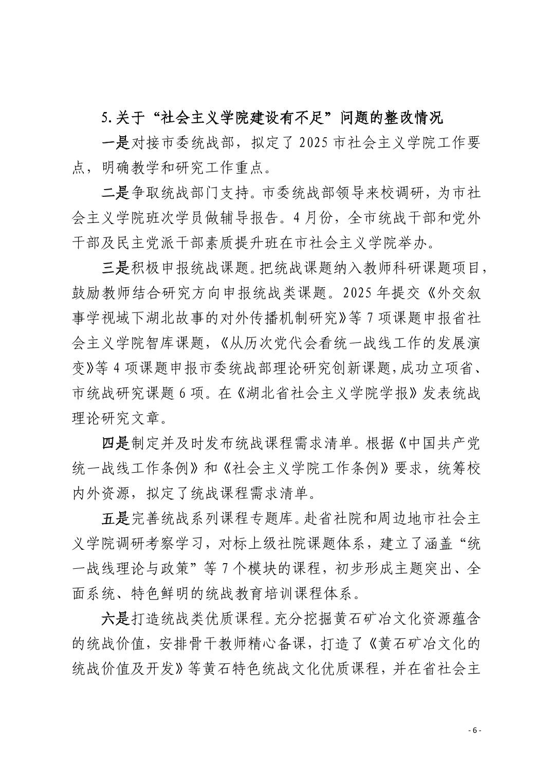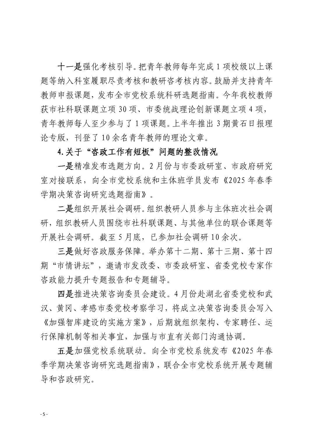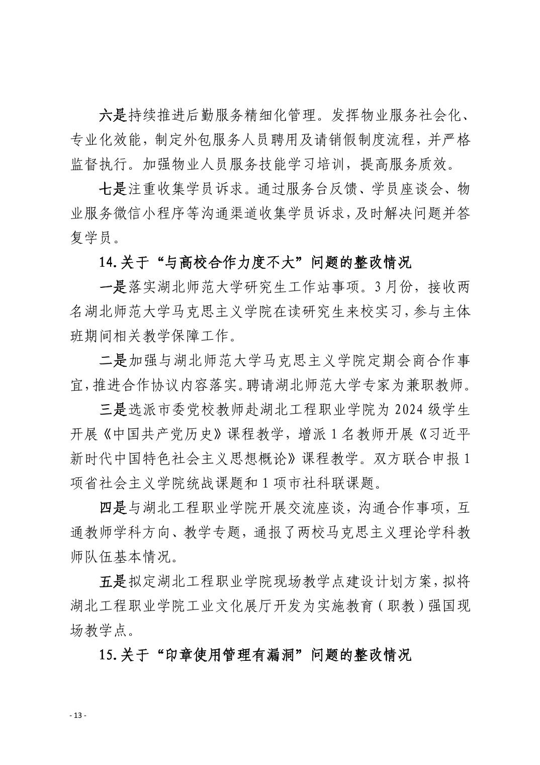 中共黄石市委党校(黄石市行政学院)关于十四届市委第九轮巡察整改进展情况的通报