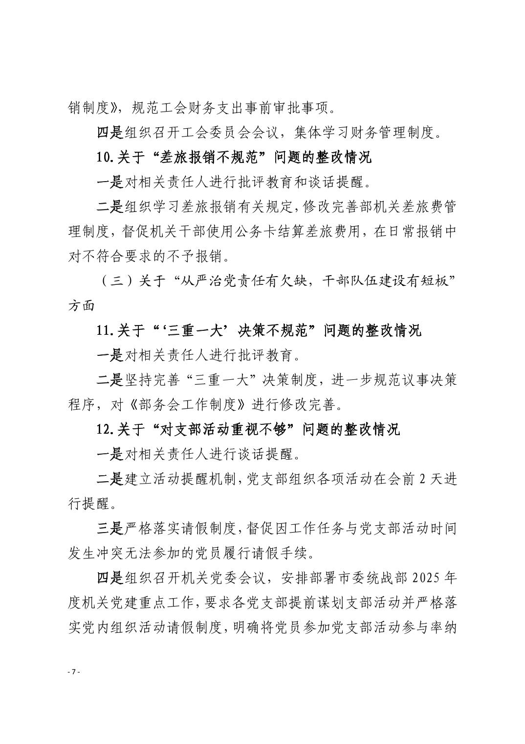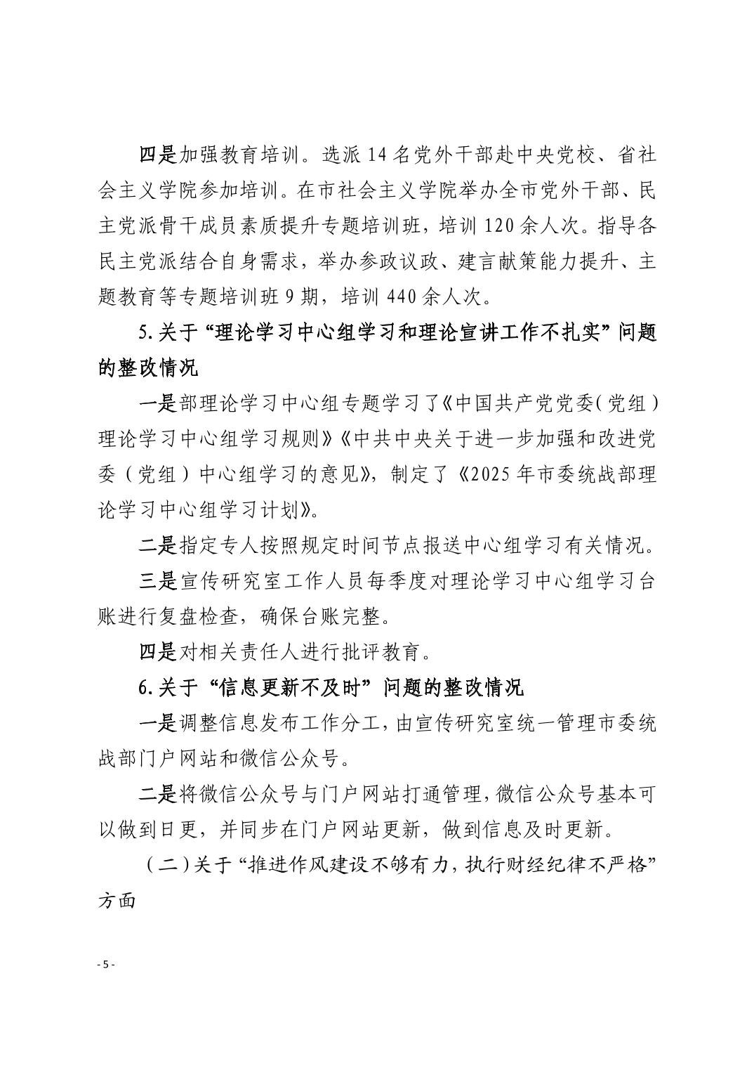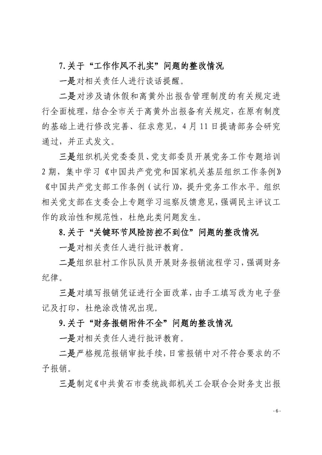 中共黄石市委统战部关于十四届市委第九轮巡察整改进展情况的通报