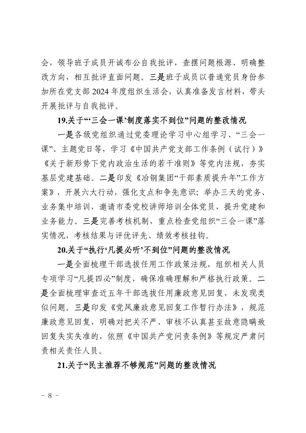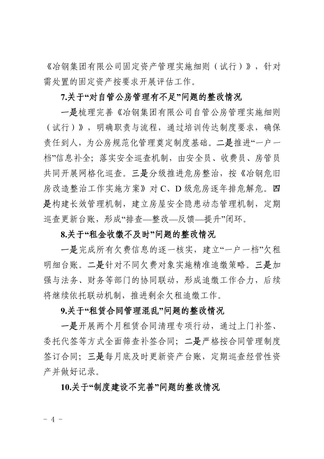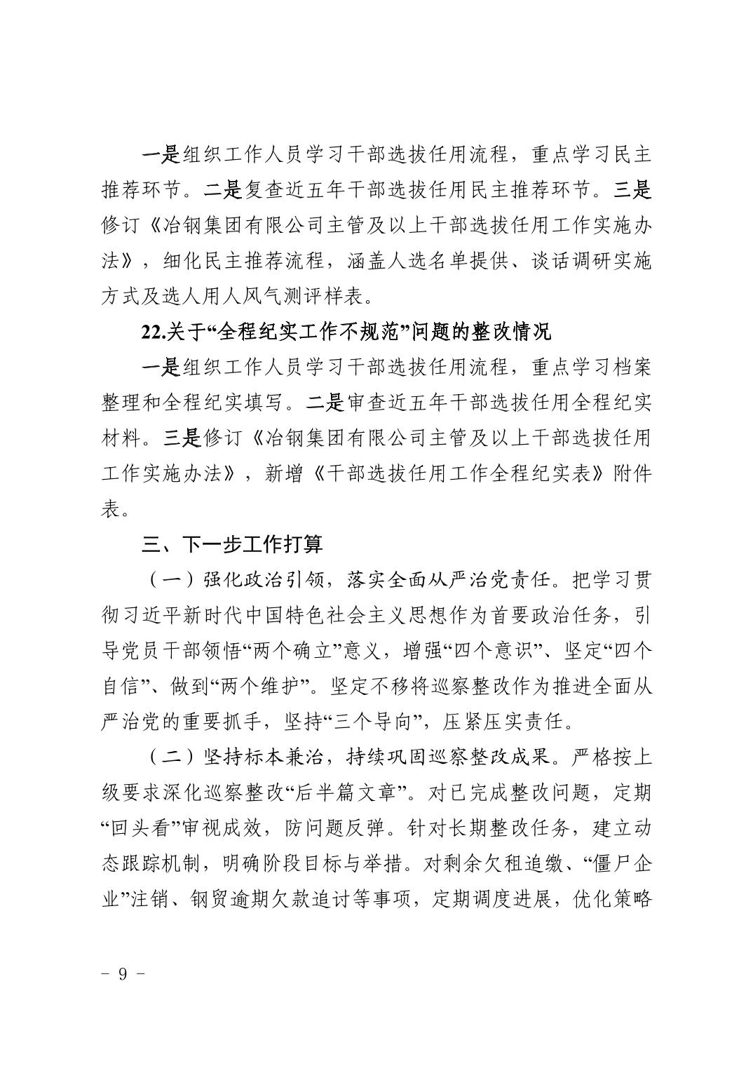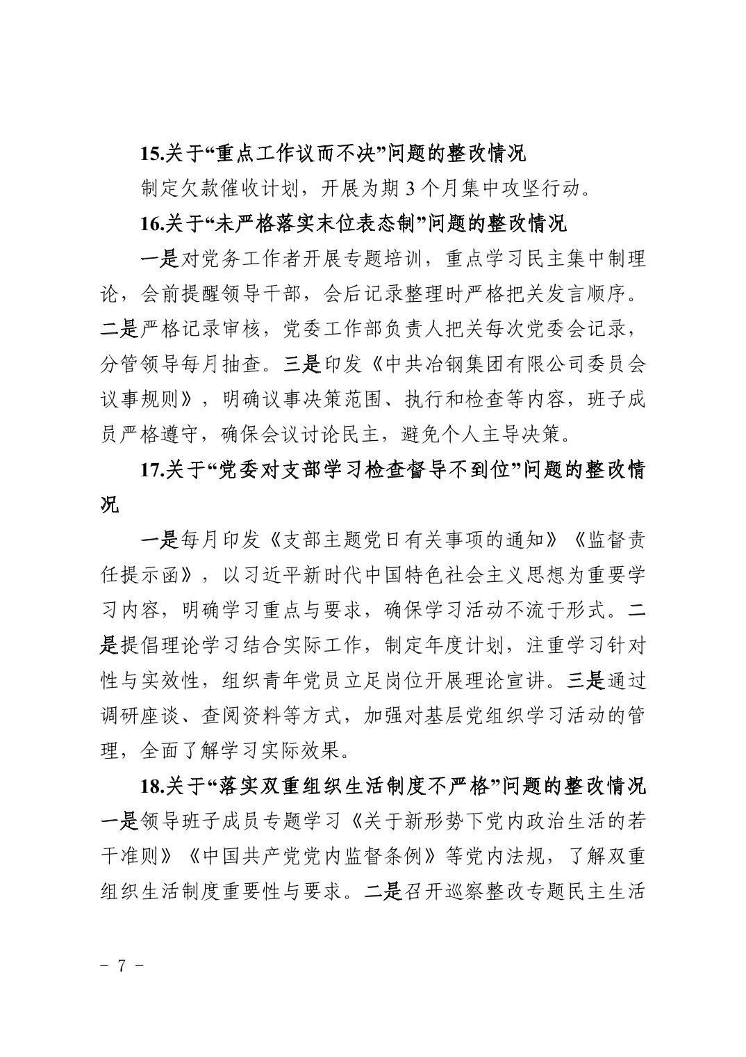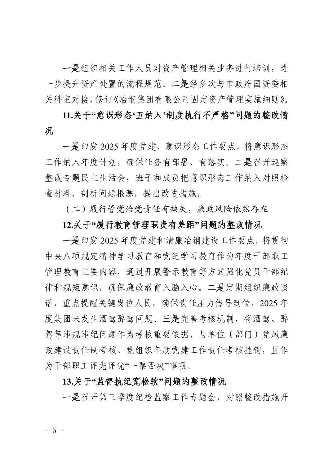 中共冶钢集团有限公司委员会关于十四届市委第十轮巡察整改进展情况的通报