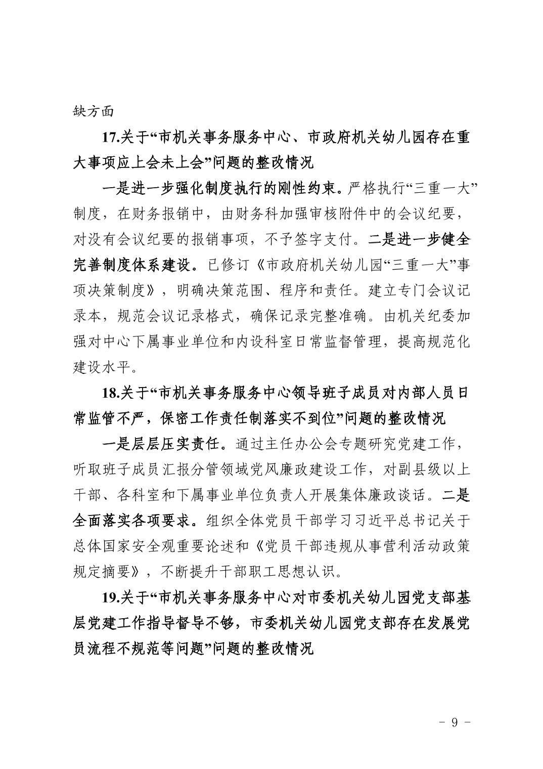 市机关事务服务中心关于十四届市委第十轮巡察整改进展情况的通报