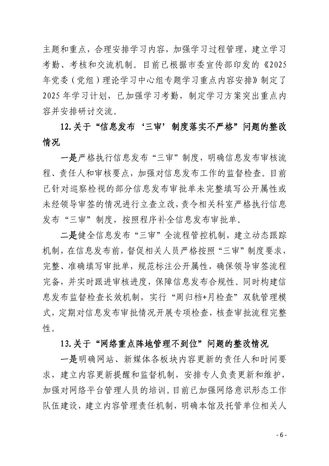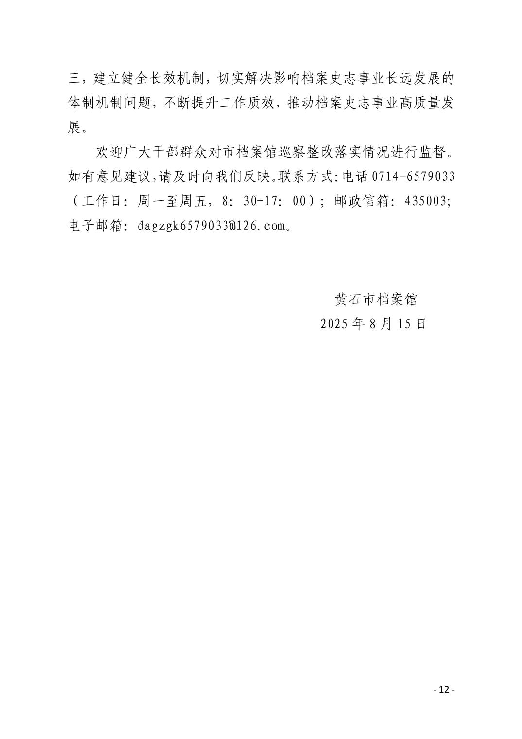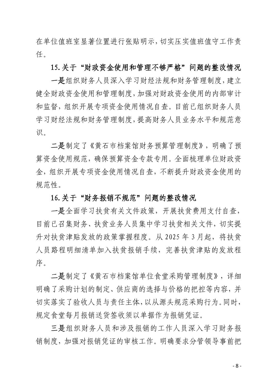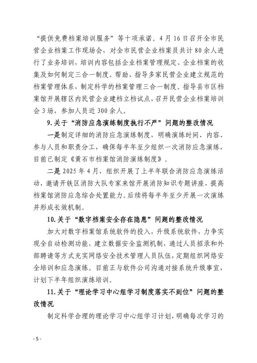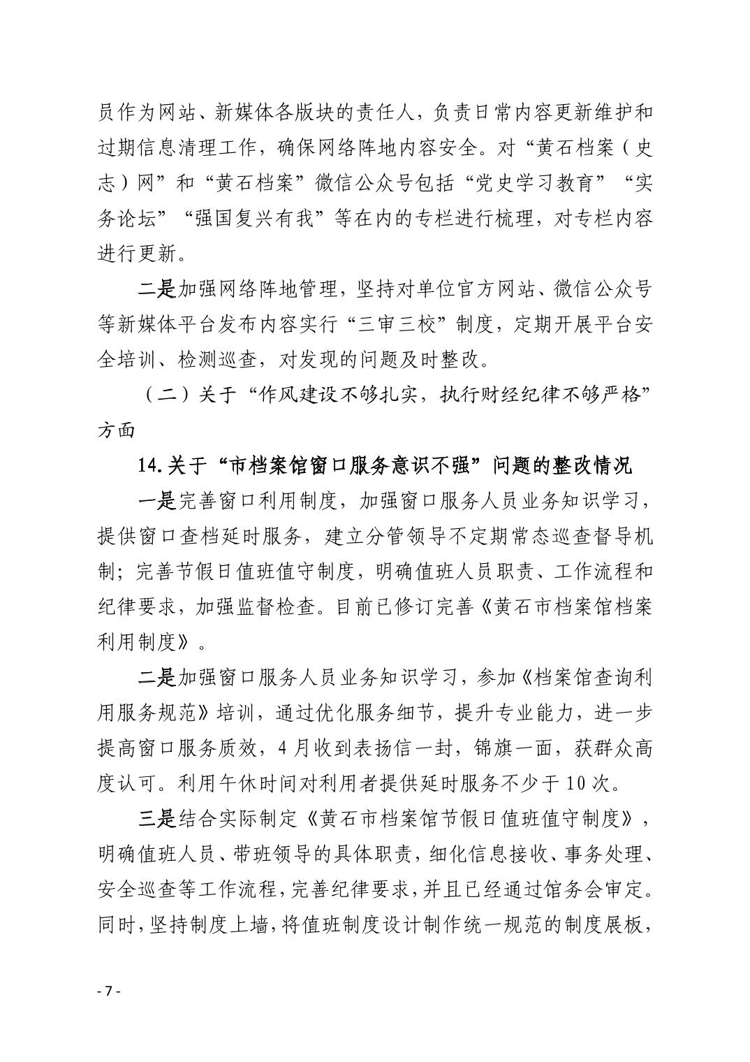 黄石市档案馆关于十四届市委第九轮巡察整改进展情况的通报
