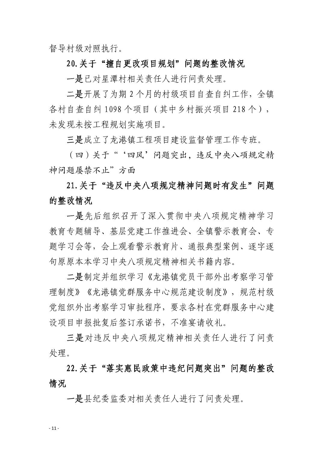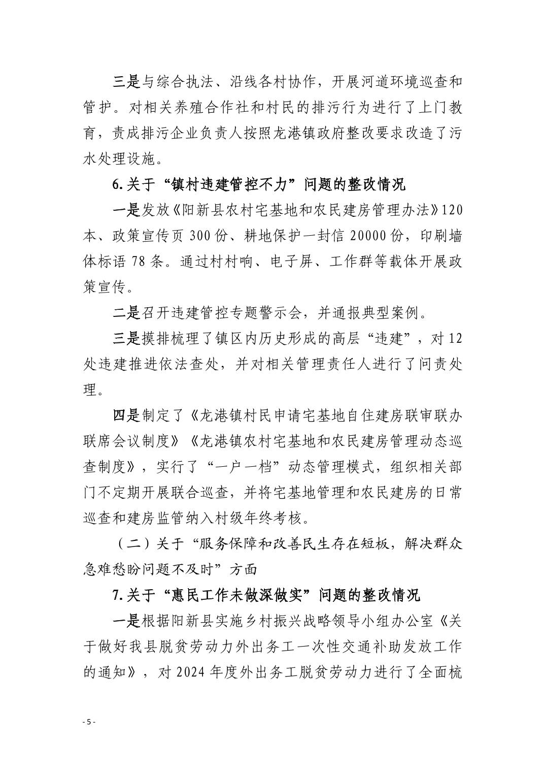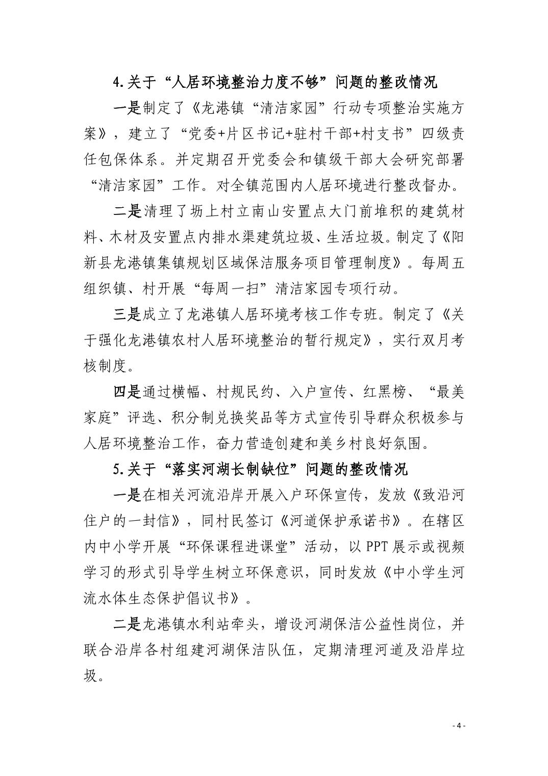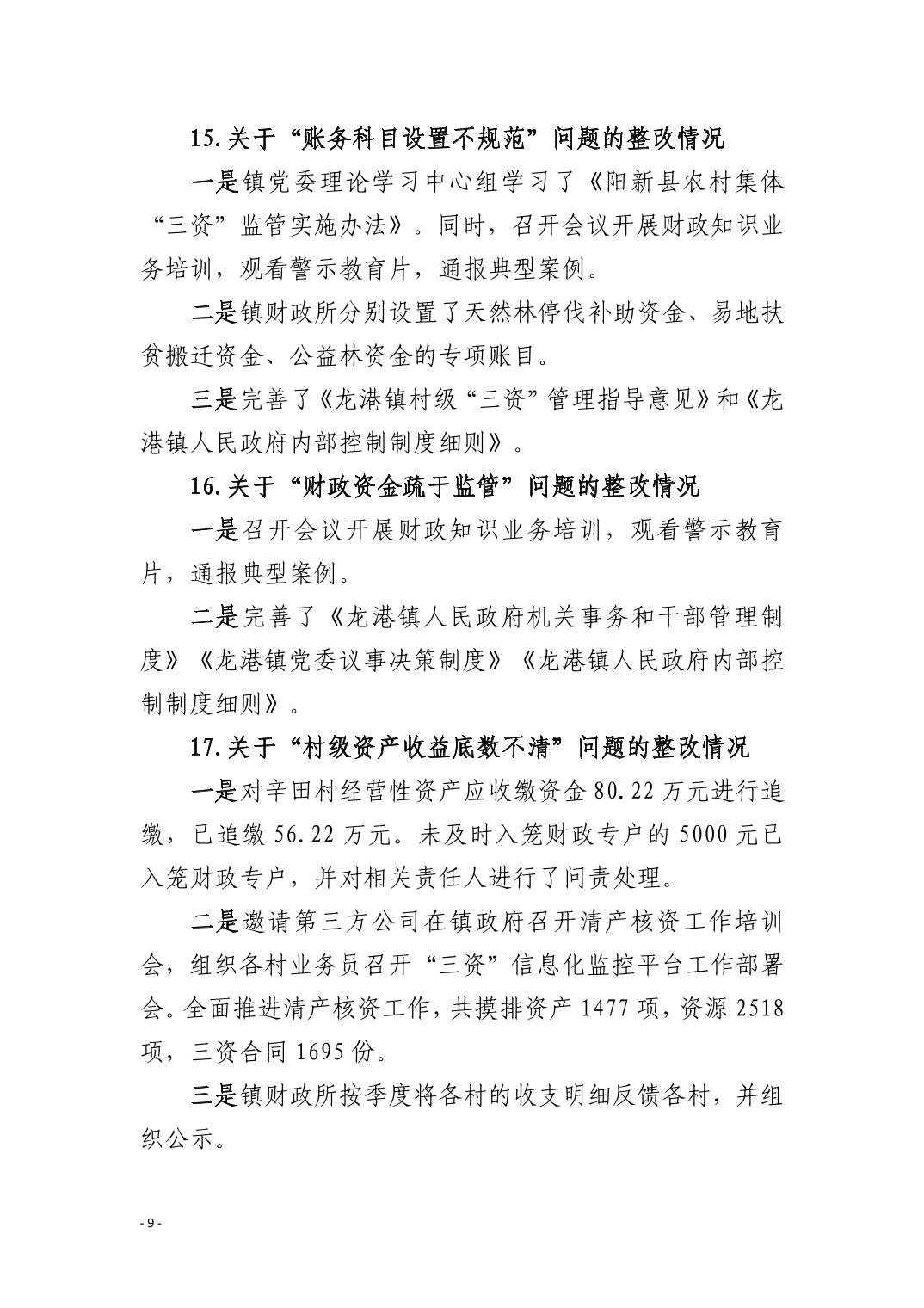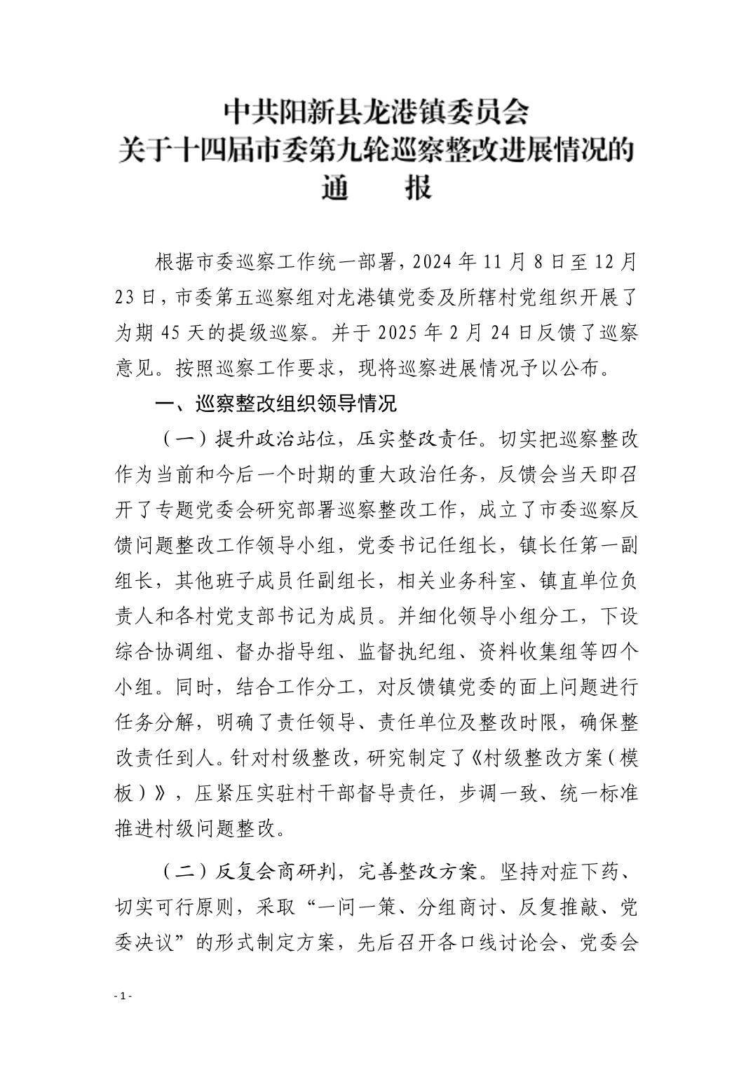 中共阳新县龙港镇委员会关于十四届市委第九轮巡察整改进展情况的通报