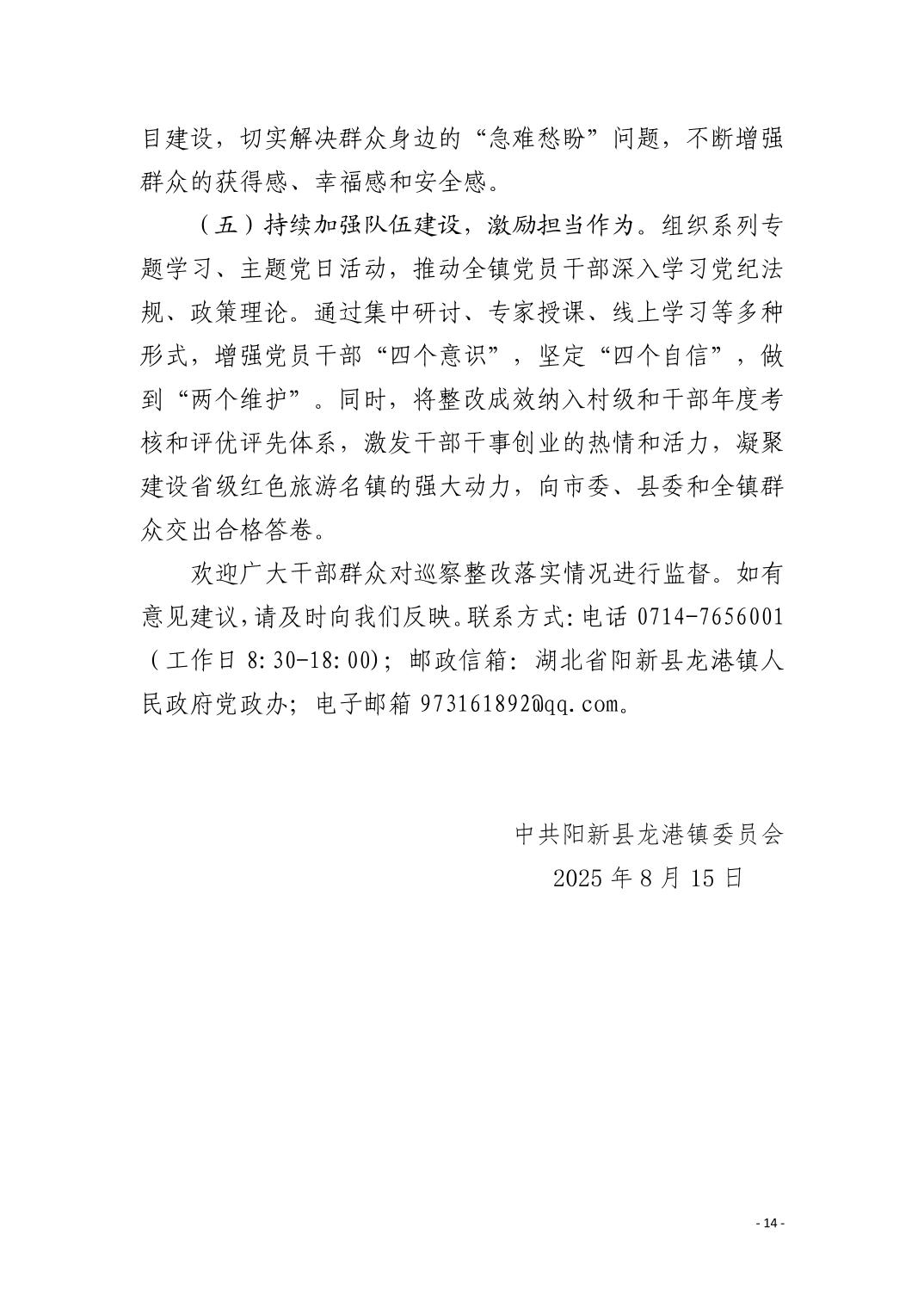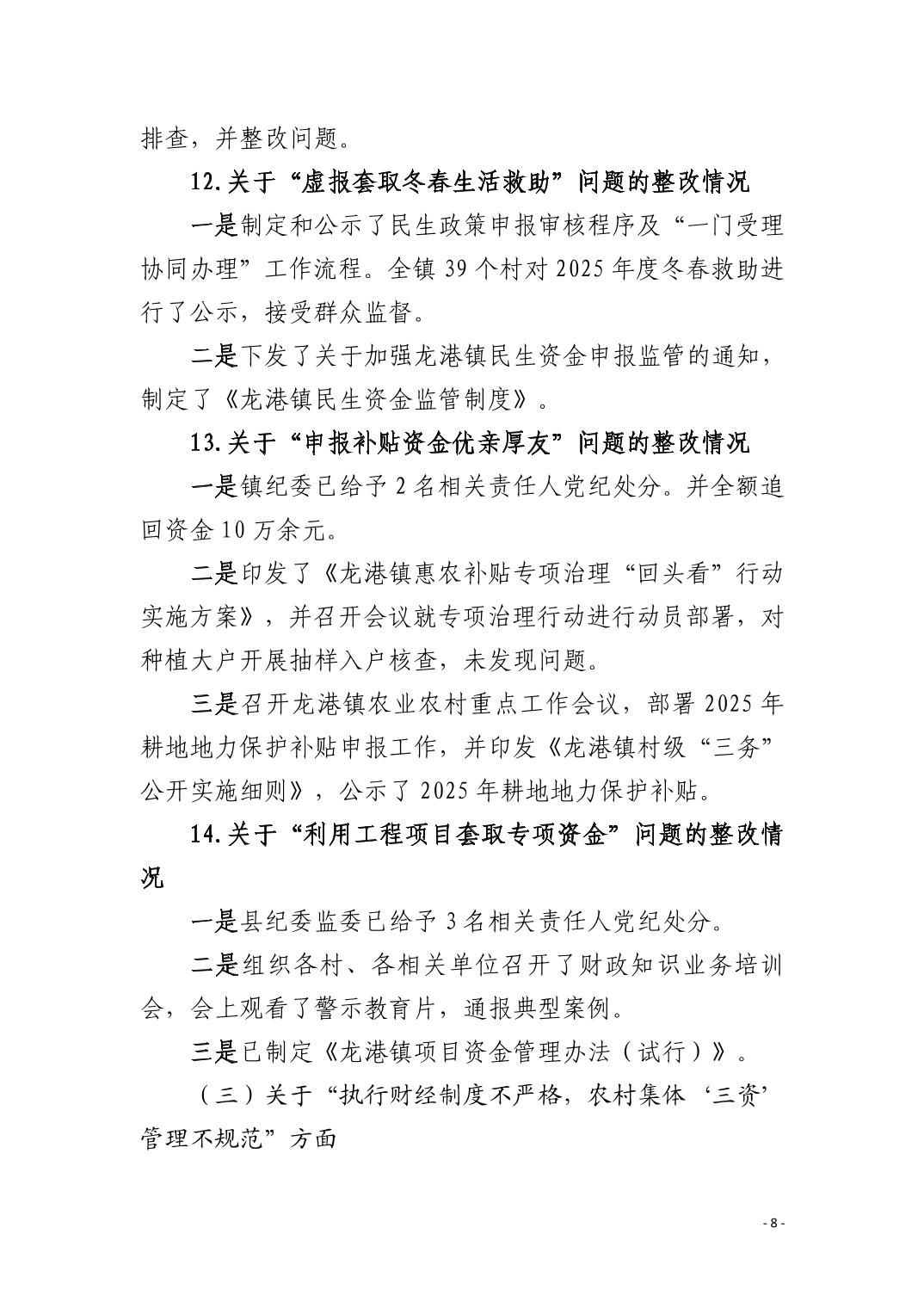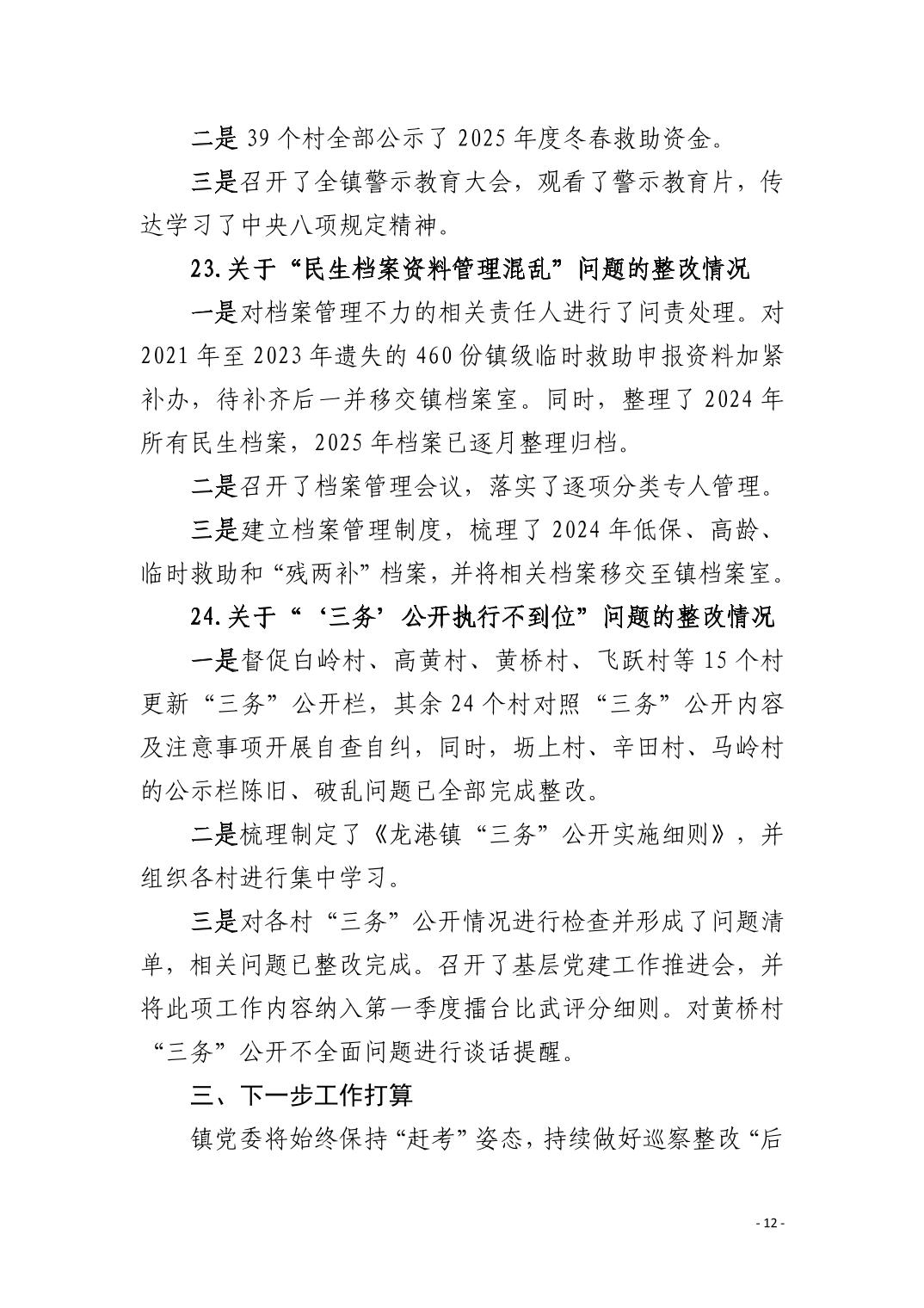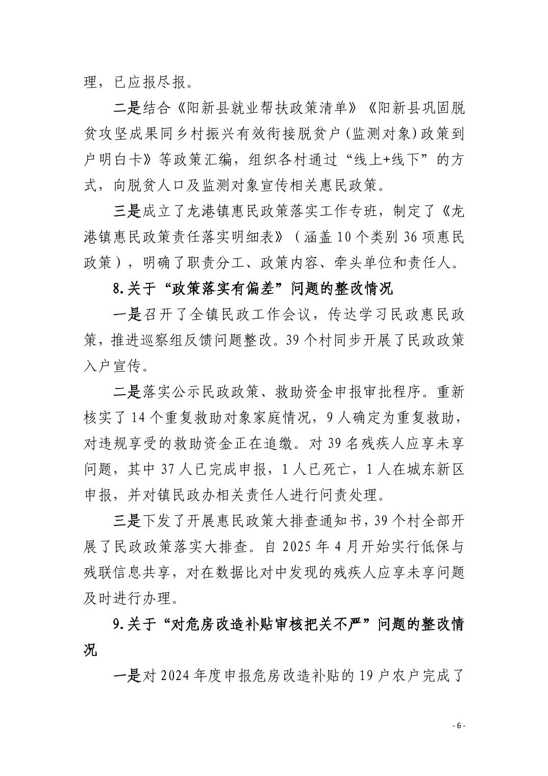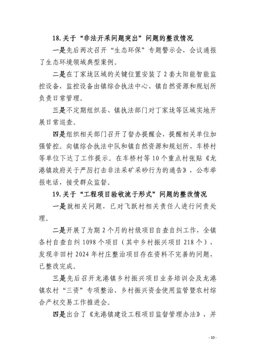 中共阳新县龙港镇委员会关于十四届市委第九轮巡察整改进展情况的通报