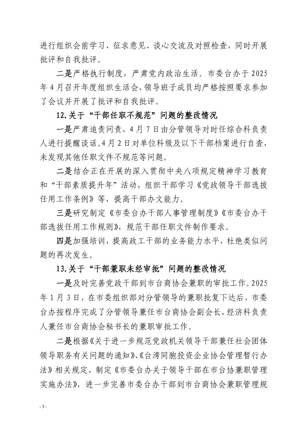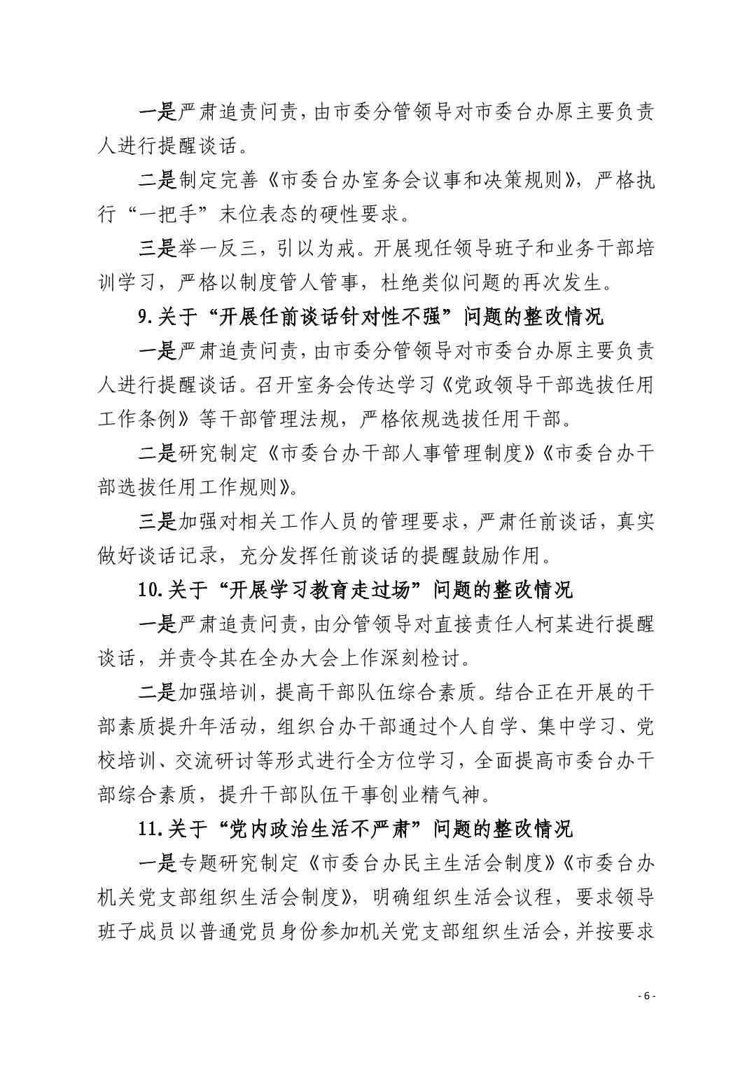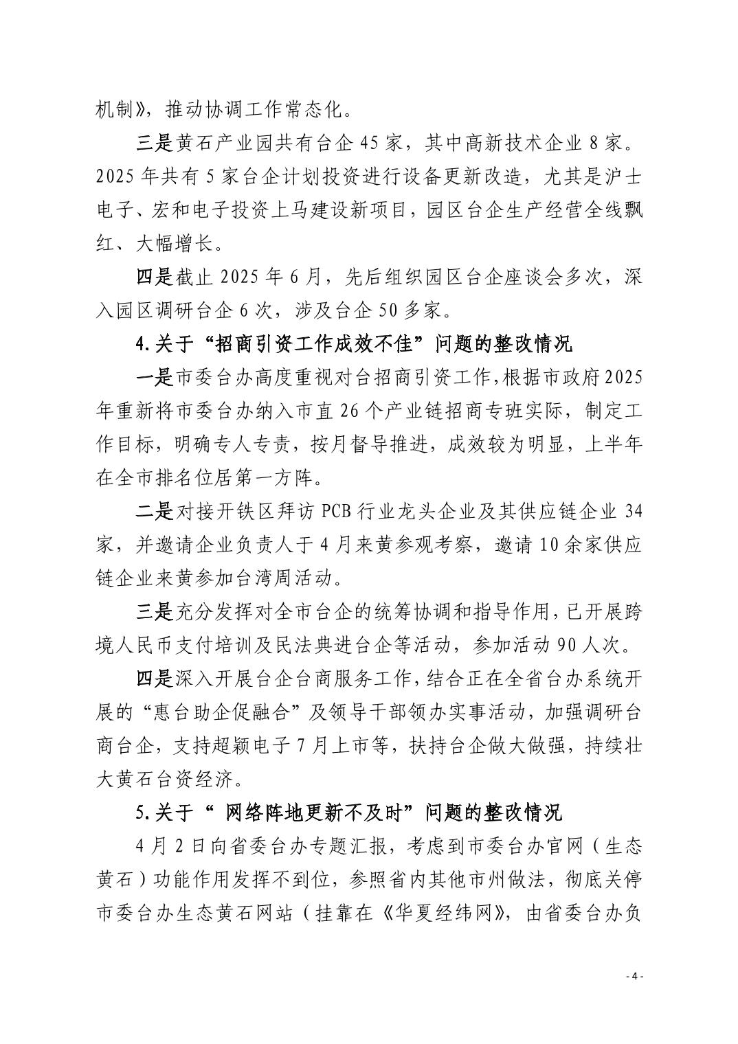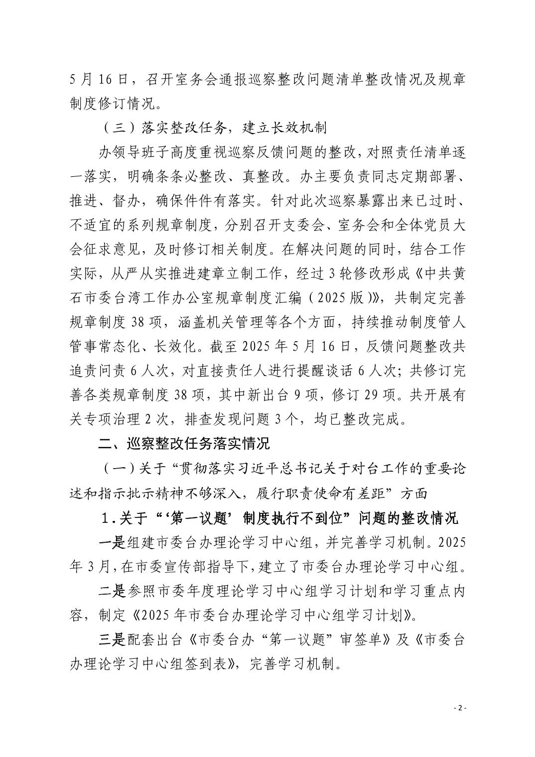 中共黄石市委台湾工作办公室关于十四届市委第九轮巡察整改进展情况的通报