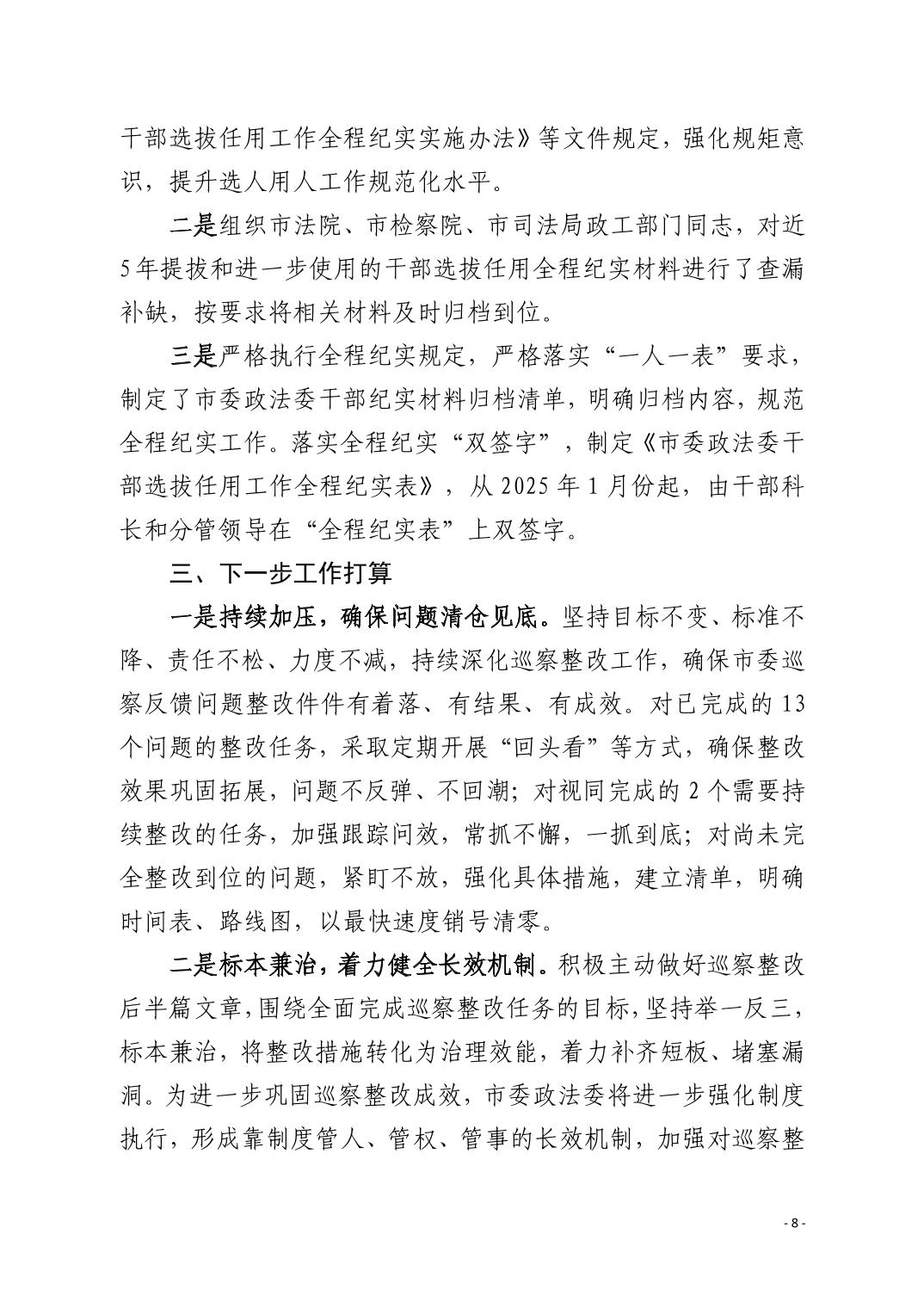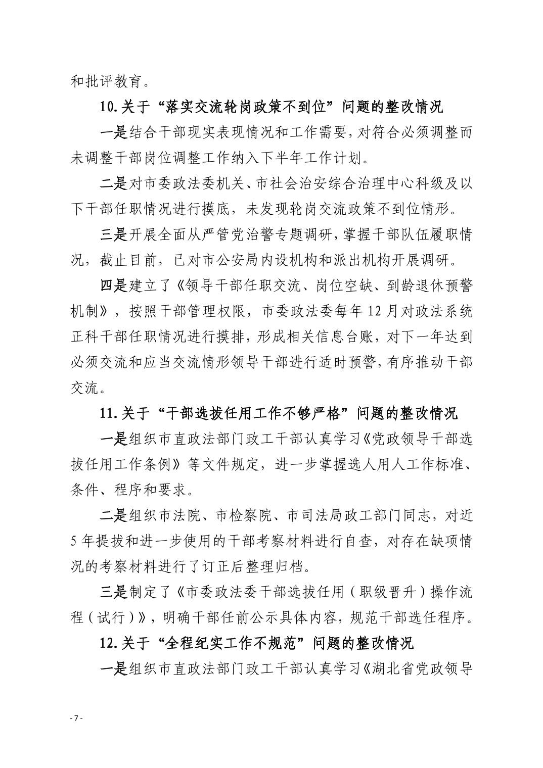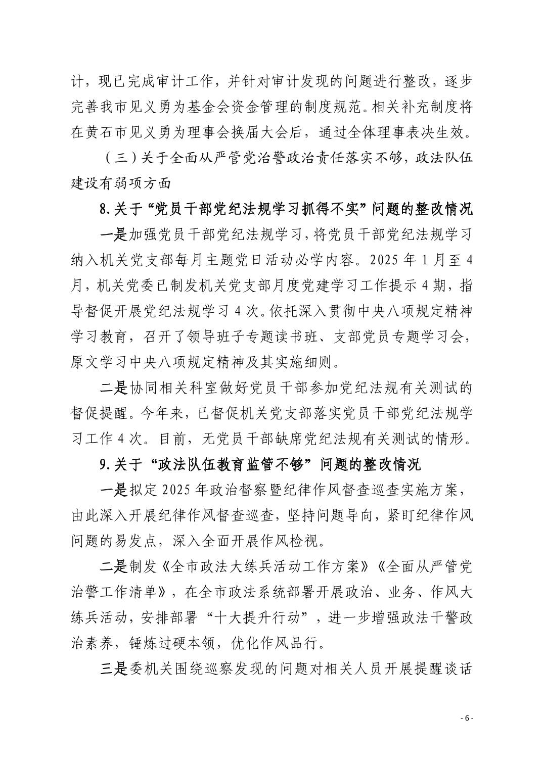 中共黄石市委政法委关于十四届市委第九轮巡察整改进展情况的通报