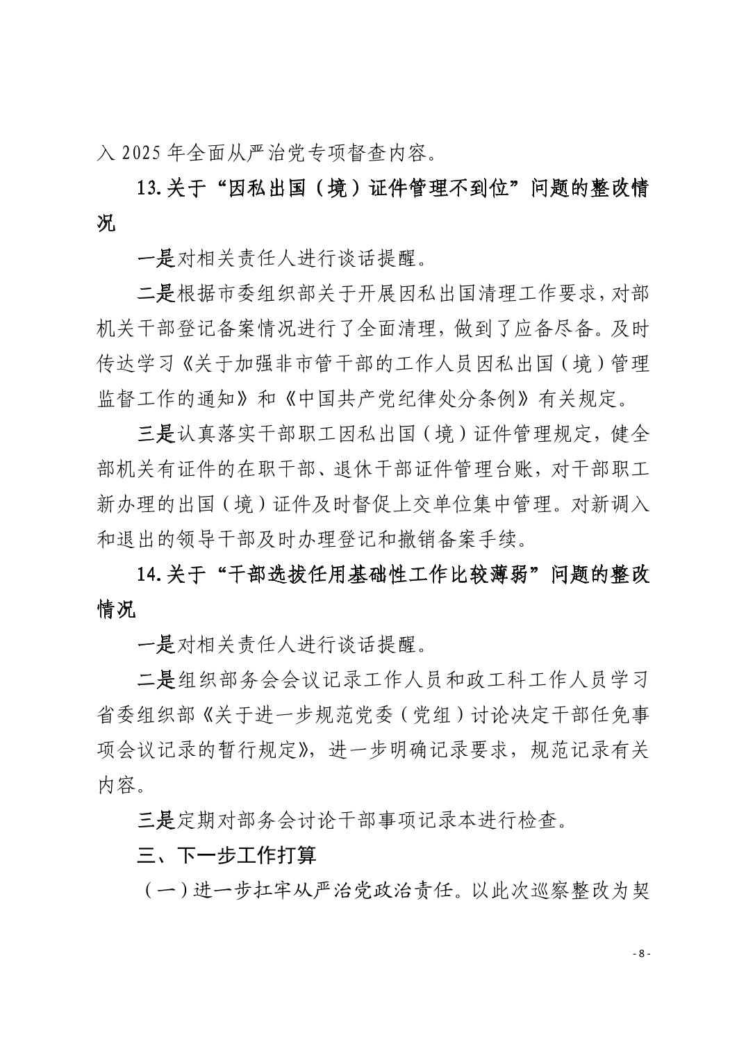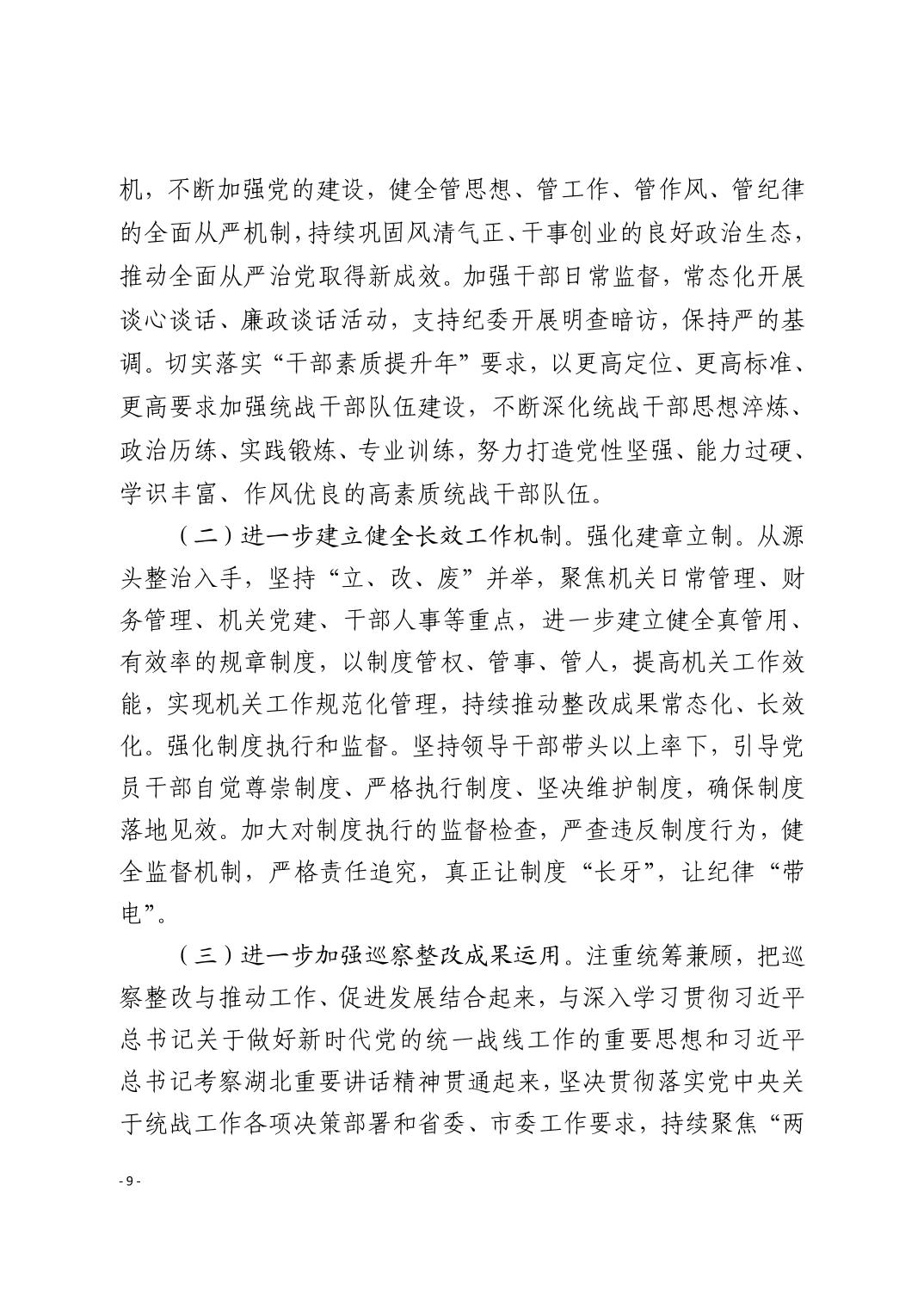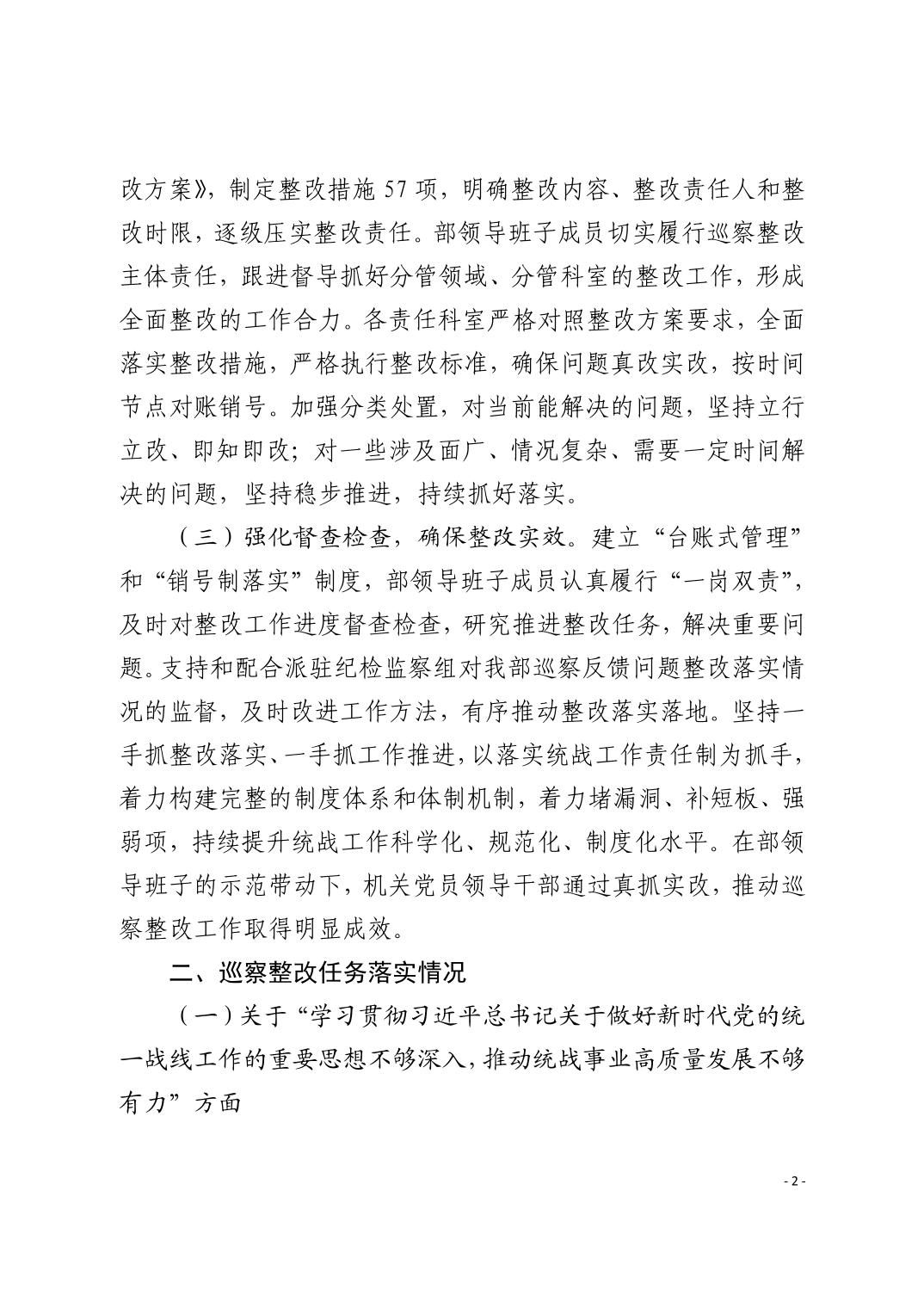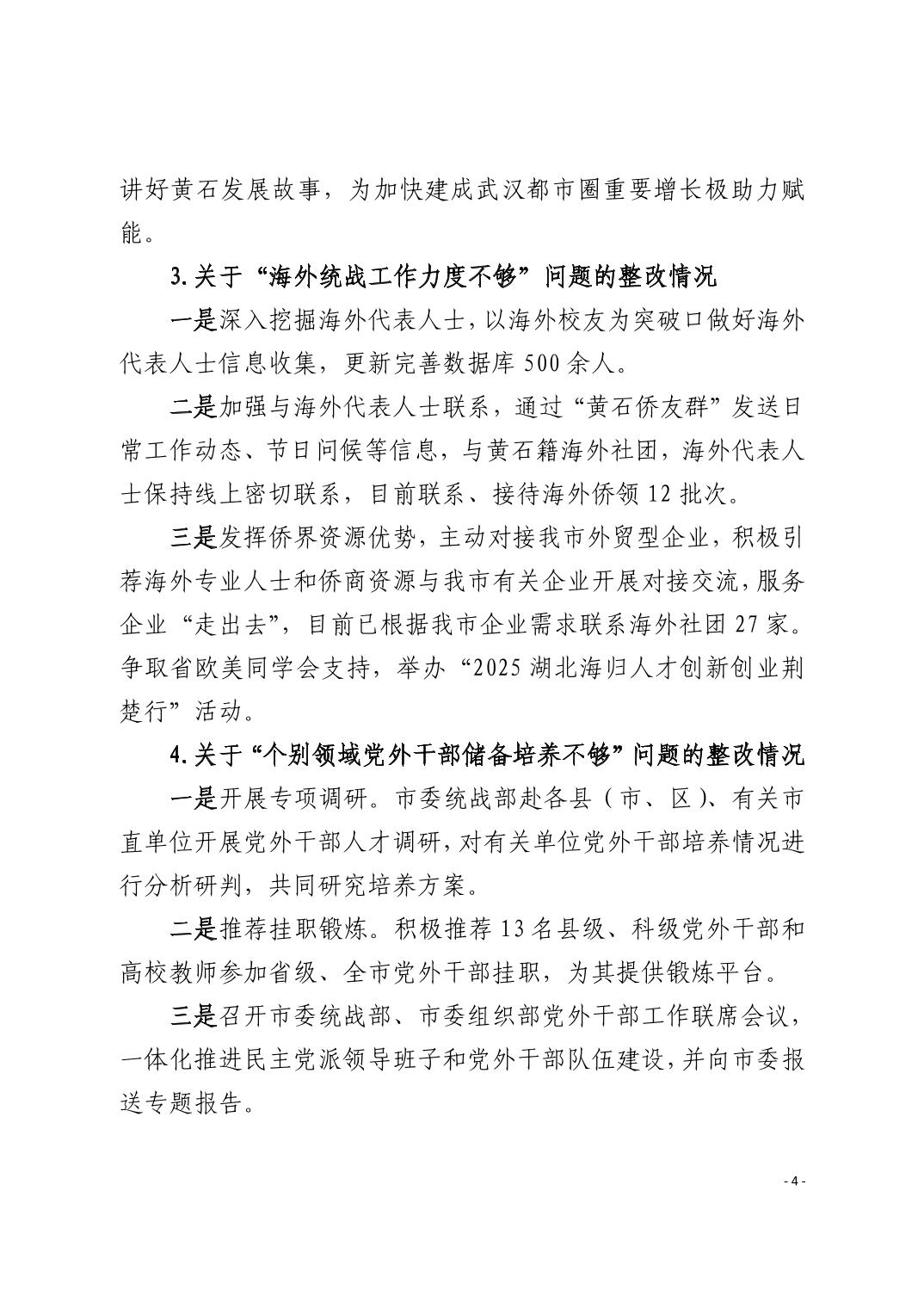中共黄石市委统战部关于十四届市委第九轮巡察整改进展情况的通报