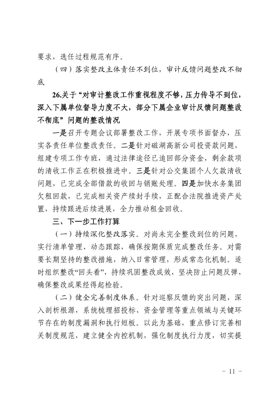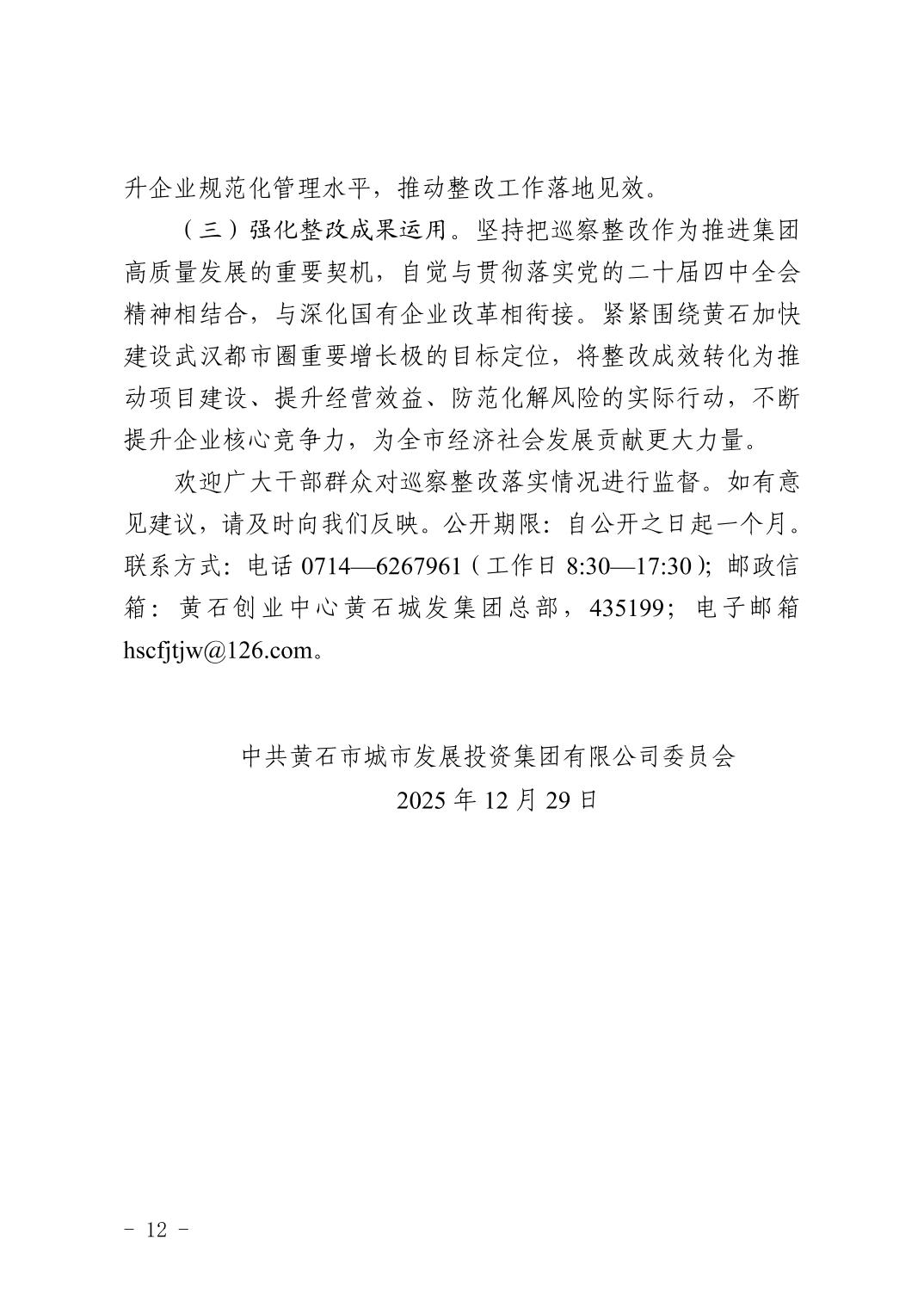 中共黄石市城市发展投资集团有限公司委员会关于十四届市委第十轮巡察整改进展情况的通报